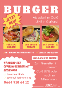 Besonders hervorzuheben sind die Burger, die mit handgemachten Pattys und frischen Semmerln von der Bäckerei Hirtenlehner zubereitet werden.
